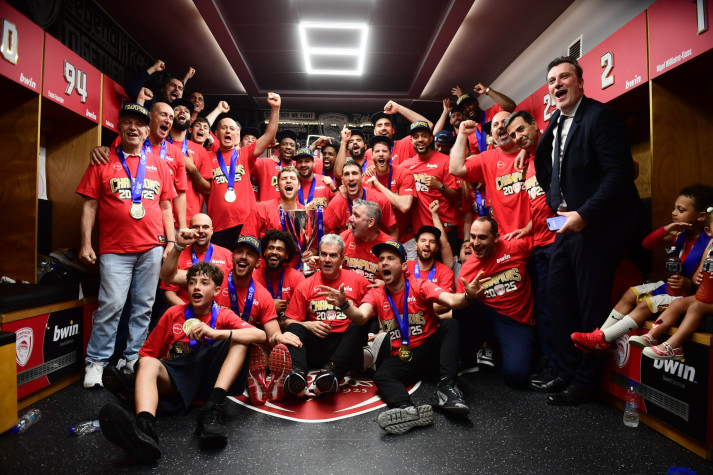 Εμείς... σταματάμε! Οι εντυπωσιακές εικόνες που αποτυπώθηκαν πριν, κατά τη διάρκεια και μετά την απονομή του τίτλου διατυπώνουν με μεγαλύτερη ακρίβεια την χαρά της επιτυχίας των Πειραιωτών: 411 λέξεις είναι αρκετές, ακολουθεί το photostory εν είδει επιλόγου της σεζόν 2024/25.