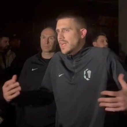 «Ξέρετε με ποιανού το μέρος είμαστε. Είμαστε εδώ για την ομάδα που αγαπάμε περισσότερο από όλες. Για την Παρτίζαν. Ότι και να γίνει, δεν μπορούμε να το επηρεάσουμε. Έχουμε προσπαθήσει και προσπαθήσαμε. Αν νομίζετε πως ξέρουμε κάτι παραπάνω από εσάς, τότε κάνετε μεγάλο λάθος. Ξέρουμε ότι ξέρετε εσείς, ίσως εσείς να ξέρετε και παραπάνω. Βγήκα έξω ως αρχηγός της ομάδας. Κάποιοι δεν καταλαβαίνουν τι γίνεται. Προσπαθούμε να τους εξηγήσουμε. Αυτό δεν έχει ξαναγίνει ποτέ, πόσο μάλλον στην ομάδα μας. Είμαι εδώ τώρα που έγινε η καταστροφή και θα παραμείνω εδώ».