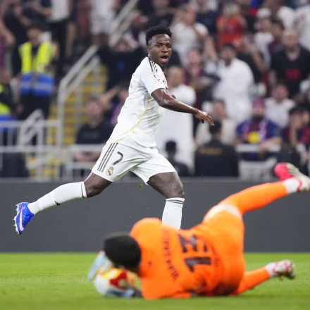 Στο πρώτο λεπτό των καθυστερήσεων, ο Βινίσιους πήρε τη μπάλα από τα αριστερά, απέφυγε με «τούνελ» τον Κουντέ για να μπει στην περιοχή, έκανε ό,τι ήθελε την υπόλοιπη άμυνα της Μπαρτσελόνα με αλλεπάλληλες προσποιήσεις και πλάσαρε ιδανικά στη γωνία για το 1-1.
