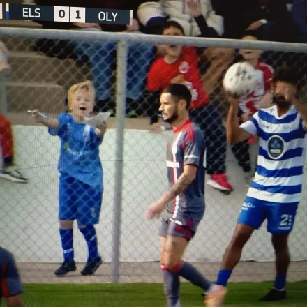 Ένα από τα πιο όμορφα και απρόσμενα στιγμιότυπα εκτυλίχθηκε στην Ερμούπολη, κατά τη διάρκεια της αναμέτρησης της Ελλάς Σύρου με τον Ολυμπιακό. Η ώρα του αγώνα (13:30), σε συνδυασμό με το ιδιαίτερο σημείο στο οποίο βρίσκεται το γήπεδο, χάρισε στους θεατές μια σπάνια εικόνα. Ομως ο πρωταγωνιστής του αγώνα, ήταν ένας μικρός φίλαθλος.