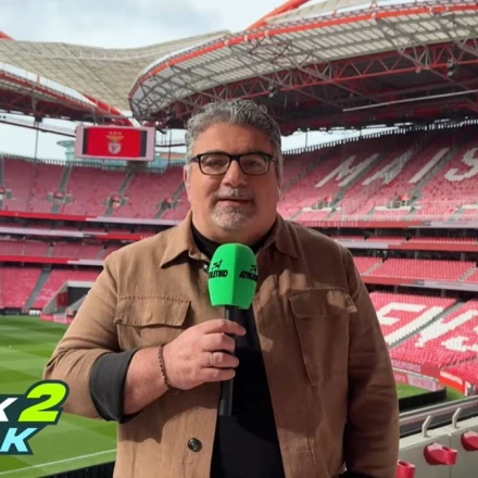 Η κάμερα του Athletiko ζωντανά από τη Λισαβόνα και το γήπεδο της Μπενφίκα, με τον Μιχάλη Τσόχο να αναφέρεται στον Βαγγέλη Παυλίδη.