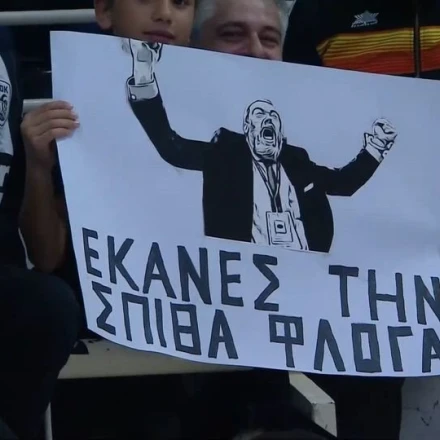Πριν το πρώτο τζάμπολ της αναμέτρησης, η κάμερα της δημόσιας τηλεόρασης, εντόπισε ένα απίστευτο πανό, το οποίο αφορούσε τον ισχυρό διοικητικό παράγοντα της ομάδας, τον Θανάση Χατζόπουλο.