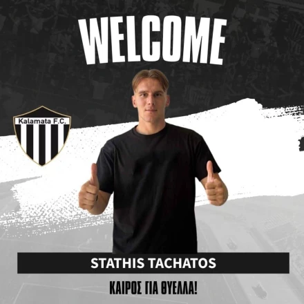 «Η ΠΑΕ Καλαμάτα είναι στην ευχάριστη θέση να ανακοινώσει την απόκτηση του ποδοσφαιριστή Στάθη Τάχατου, ο οποίος υπέγραψε διετές συμβόλαιο με την ομάδα μας. Ο 23χρονος δεξιός μπακ ξεκίνησε την καριέρα του από τις ακαδημίες του ΠΑΟΚ, όπου και αγωνίστηκε μέχρι και την Β’ ομάδα του «δικέφαλου του βορρά», ενώ ενδιάμεσα είχε έναν 6μηνο δανεισμό στα Τρίκαλα.