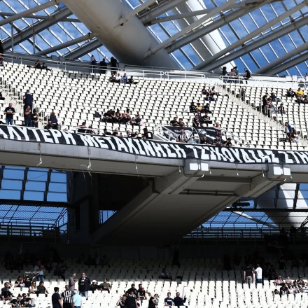 Τρομερό πανό έχει τοποθετηθεί στις κερκίδες του ΟΑΚΑ, από τους πρώτους οπαδούς του ΟΦΗ που εισήλθαν στο γήπεδο.