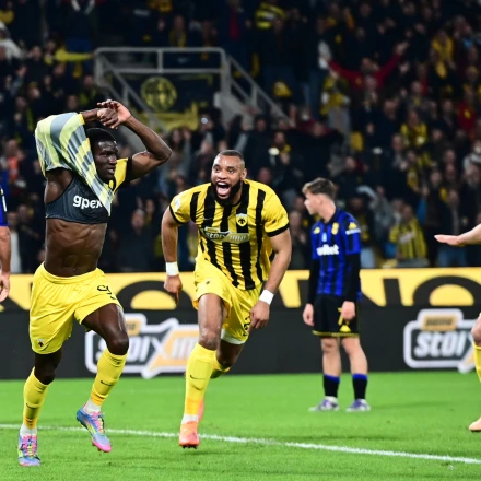 Οι παίκτες της ΑΕΚ πανηγυρίζουν το γκολ του Ζίνι / Πηγή: Eurokinissi
