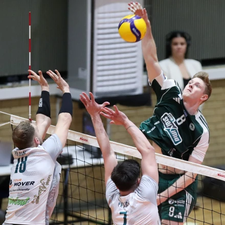 Η στιγμή που ο Ράσμους Νίλσεν καρ΄φωνει και οι Πολουγιάν και Πετρέας κάνουν μπλοκ στον αγώνα του Παναθηναϊκού με τον Μίλωνα / Πηγή: Intime