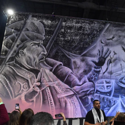 Έτσι, το πανό που ανήρτησαν οι οπαδοί της Παρτίζαν απεικονίζει τον Μίλος Όμπιλιτς, τη στιγμή που μαχαιρώνει τον σουλτάνο Μουράτ.