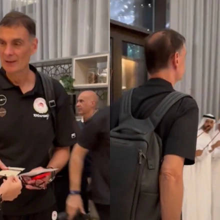 Ο Γιώργος Μπαρτζώκας, εισήλθε στο ξενοδοχείο όπου θα διαμείνει ο Ολυμπιακός στο Άμπου Ντάμπι, υποδεχόμενος με... μεγάλες τιμές.