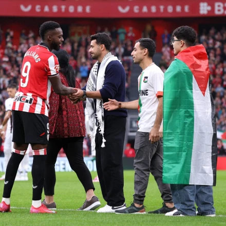Μια τελετή προς τιμήν της Παλαιστίνης στο «Σαν Μαμές». Η Αθλέτικ Μπιλμπάο του Ερνέστο Βαλβέρδε, διοργάνωσε μια εκδήλωση αλληλεγγύης με τον παλαιστινιακό λαό αυτό το Σάββατο (4/10), λίγο πριν από τον αγώνα της στη La Liga εναντίον της Μαγιόρκα (2-1).