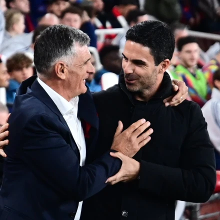 Ο Χοσέ Λουίς Μεντιλίμπαρ είχε ένθερμο τετ α τετ με ζεστό εναγκαλισμό με τον προπονητή των «κανονιέρηδων», Μικέλ Αρτέτα. Άλλωστε, οι δυο τους γνωρίζονται πολύ καλά εδώ και χρόνια!