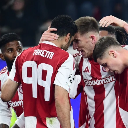 Οι ποδοσφαιριστές του Ολυμπιακού πανηγυρίζουν / Πηγή: Intime