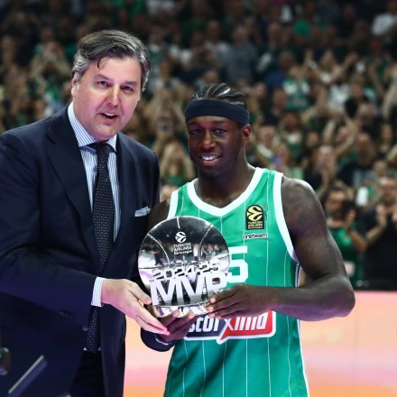 Ο Αμερικανός σούπερ σταρ του Παναθηναϊκού AKTOR αναδείχθηκε νικητής στη ψηφοφορία του MVP για την κανονική περίοδο της διοργάνωσης και λίγο πριν το τζάμπολ του Game 1 κόντρα στην Αναντολού Εφές, παρέλαβε το βραβείο του κι επίσημα.