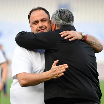 Λίγο πριν την σέντρα, οι μεγαλομέτοχοι των δύο ΠΑΕ, Βαγγέλης Μαρινάκης και Μιχάλης Μπούσης είχαν ένθερμο εναγκαλισμό και μια μικρή κουβέντα, επισφραγίζοντας το καλό κλίμα που επικρατεί στο ΟΑΚΑ.