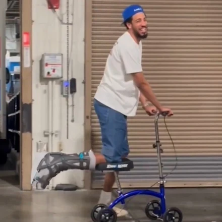 Σε χθεσινοβραδινό παιχνίδι πάντως, έκανε την είσοδό του με έναν, πολύ πρωτότυπο τρόπο, που τράβηξε τα βλέμματα της δημοσιότητας. Εμφανίστηκε επάνω σε ένα κοντό ποδήλατο, στη σέλα του οποίου είχε στηρίξει το τραυματισμένο πόδι του, τσουλώντας για να κάνει την είσοδό του στο στάδιο, με τον ίδιο να γελάει αναγνωρίζοντας πως η όλη εικόνα φαντάζει ξεκαρδιστική. Ο κόσμος πάντως που βρισκόταν στο σημείο ενθουσιάστηκε ιδιαίτερα με αυτό που έβλεπε.
