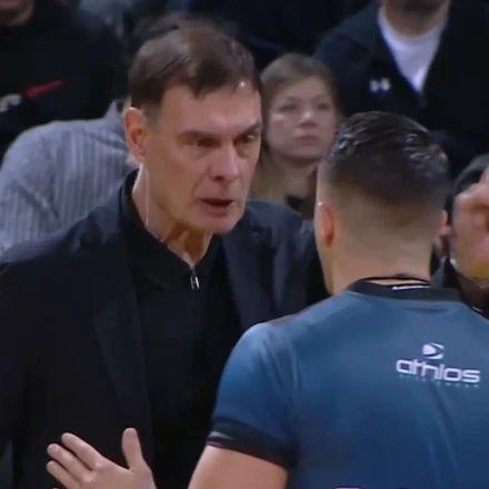 Ο Γιώργος Μπαρτζώκας τα... πήρε μετά από τεχνική ποινή που δόθηκε στον Τόμας Γουόκαπ και τα είπε σε έντονο ύφος με τον πρώτο διαιτητή της αναμέτρησης.