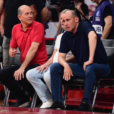Τελευταία φορά που ο Παναγιώτης και ο Γιώργος Αγγελόπουλος μίλησαν στους δημοσιογράφους ήταν στη συνέντευξη τύπου μετά τον 4ο τελικό με τον Παναθηναϊκό και την κατάκτηση του Πρωταθλήματος στο ΣΕΦ.