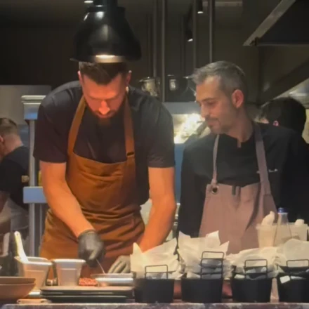 Συγκεκριμένα, όχι μόνο βρέθηκε στο «TwentyFive», αλλά έβαλε ποδιά, γάντια, πήρε το μαχαίρι και... έπιασε δουλειά. Ο Γιώργος Τσουλής, Σεφ του μαγαζιού, έδειξε στον Αμερικάνο φόργουορντ και ιδιοκτήτη την τέχνη των κοπών των κρεάτων.