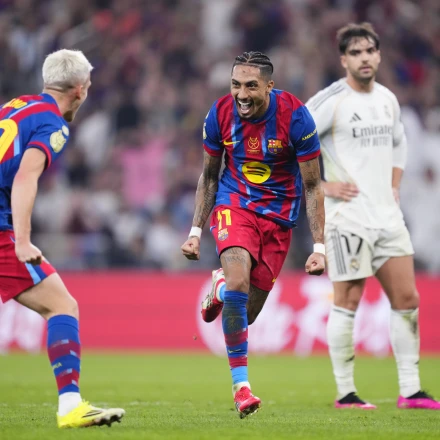 Ο Ραφίνια στο 73' του ισπανικού Σούπερ Καπ σημειώνει πέφτοντας το δεύτερο προσωπικό του τέρμα και δίνει το προβάδισμα με 3-2 στη Μπαρτσελόνα κόντρα στη Ρεάλ Μαδρίτης.