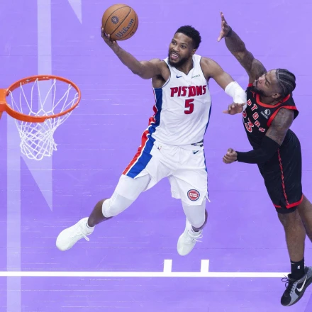 Ο Μαλίκ Μπίσλεϊ σε προσπάθεια να πετύχει καλάθι με τη φανέλα των Πίστονς / Πηγή: Imago