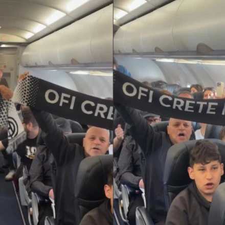 Φανταστική ατμόσφαιρα δημιούργησαν οι οπαδοί του ΟΦΗ στην πτήση της ομάδας για την Αθήνα.