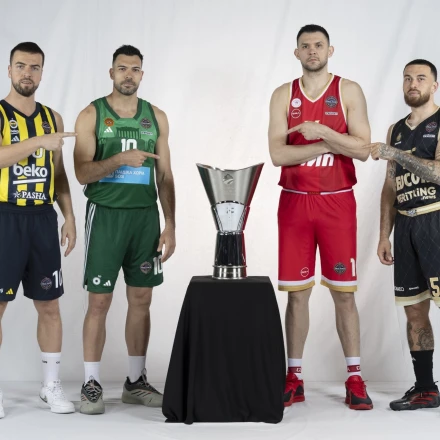 Ενόψει των ημιτελικών που ξεκινούν αύριο (23/5) οι τέσσερις αρχηγοί των ομάδων φωτογραφήθηκαν με το τρόπαιο. Σλούκας, Παπανικολάου, Τζέιμς και Μαχμούτογλου στάθηκαν δίπλα στην κούπα, με την Euroleague να γράφει στα social media: «Τώρα αρχίζει και σοβαρεύει το πράγμα».