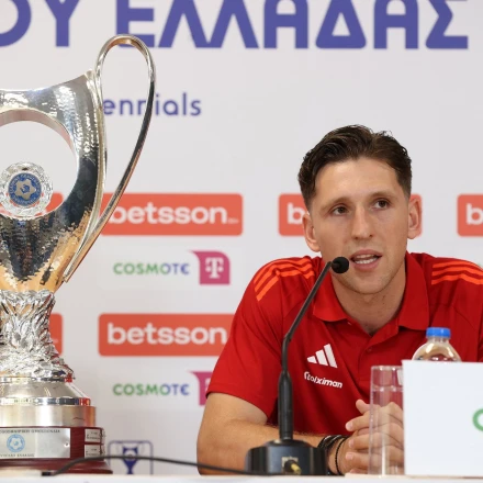 O αρχηγός του Ολυμπιακού, Παναγιώτης Ρέτσος, εκπροσώπησε τους πρωταθλητές Ελλάδας στη συνέντευξη Τύπου ενόψει του τελικού του Κυπέλλου με τον ΟΦΗ στο ΟΑΚΑ, το βράδυ του Σαββάτου.