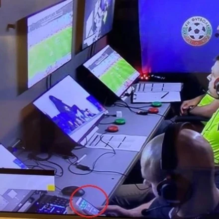 Λίγο πριν την έναρξη του ματς, οι κάμερες της μετάδοσης έκαναν την καθιερωμένη τους βόλτα από το VAR Room και «συνέλαβαν» τον χειριστή του VAR δίπλα στους δύο διαιτητές να... σκρολάρει αμέριμνος σε εφαρμογή στοιχηματικής εταιρείας!