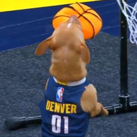 Πριν την έναρξη του αγώνα μεταξύ Νάγκετς και Λέικερς, ένας... τετράποδος φαν της ομάδας του Ντένβερ, καρφώνει σε μπασκέτα.