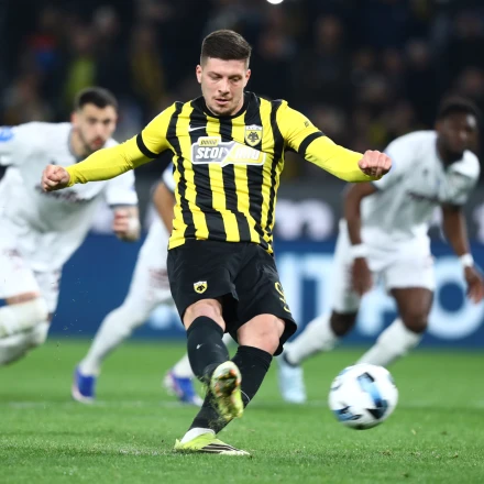 Ο διαιτητής Πολυχρόνης υπέδειξε πέναλτι σε μαρκάρισμα στον Κοϊτά εντός περιοχής και ο Λούκα Γιόβιτς πήρε την μπάλα για να εκτελέσει.