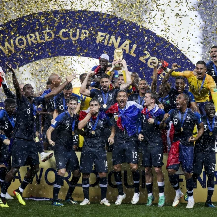 Οι παίκτες της Γαλλίας πανηγυρίζουν την κατάκτηση του Παγκοσμίου Κυπέλλου 2018 / Πηγή: Eurokinissi