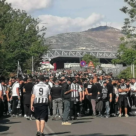 Αντίστοιχα, οι Κρητικοί έχουν ντύσει στα «ασπρόμαυρα» τη πλατεία Αμαρουσίου, με μαντινάδες, πανό και συνθήματα, δίνοντας το δικό τους παλμό στους δρόμους της Αθήνας, μέχρι να παρευρεθούν κι αυτοί στο Ολυμπιακό Στάδιο.