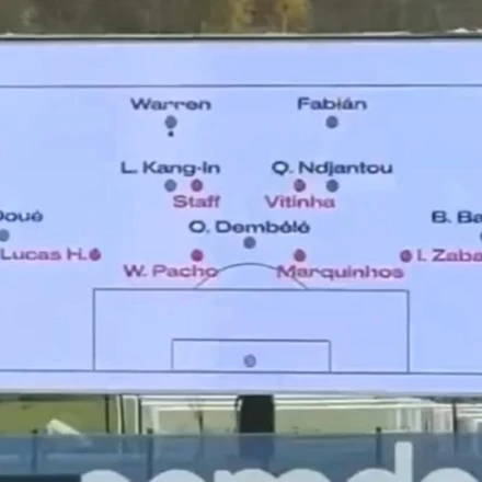 Η εικόνα αυτή καταγράφηκε το πρωί της Πέμπτης (4/12), στο προπονητικό κέντρο των Παριζιάνων, όπου έκανε την εμφάνισή του ο μεγάλος πίνακας με ονόματα παικτών γραμμένα με κόκκινο και μαύρο χρώμα, θυμίζοντας ξεκάθαρα άσκηση επίθεσης και άμυνας.  Η ακριβής ερμηνεία του συγκεκριμένου πλάνου είναι γνωστή μόνο στον ίδιο τον Λουίς Ενρίκε και το τεχνικό του επιτελείο, ωστόσο προκάλεσε έκπληξη στους φιλάθλους, οι οποίοι έσπευσαν να κάνουν λόγο για πιθανή τακτική παραπλάνησης ενόψει του επόμενου αντιπάλου, της Ρεν το Σάββατο (6/12, 22:05).