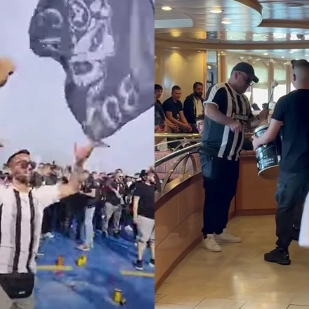 Χιλιάδες οπαδοί του ΟΦΗ που ταξιδεύουν για τον μεγάλο τελικό του Κυπέλλου Ελλάδας έχουν μετατρέψει το πλοίο σε μια τεράστια ασπρόμαυρη κερκίδα, με συνθήματα, τραγούδια και παλμό που θυμίζει Γεντί Κουλέ!