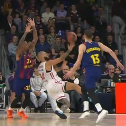 Ο Γάλλος πήρε τον διάδρομο προς το ισπανικό καλάθι, αλλά έχασε την ισορροπία του. Ο Κλάιμπερν νόμιζε ότι είχε παίξει καλή άμυνα και πως θα τον υποχρέωνε σε λάθος. Δεν είχε πάρει... χαμπάρι τι θα συνέβαινε πραγματικά, μετά από μερικά δευτερόλεπτα.