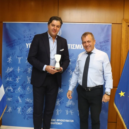 «Χαρά μου να υποδεχθώ στο Υπουργείο Αθλητισμού τον Πρόεδρο της EuroLeague Ντέγιαν Μποντιρόγκα.