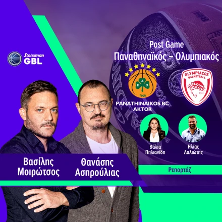 Μετά την λήξη της αναμέτρησης, το Athletiko βρίσκεται ζωντανά από το κλειστό των Ολυμπιακών Εγκαταστάσεων με τον Ηλία Λαλιώτη και την Βάλια Πηλιανίδη, για να σας μεταφέρουν όλο το ρεπορτάζ. Από το στούντιο, οι Βασίλης Μοιρώτσος και Θανάσης Ασπρούλιας.